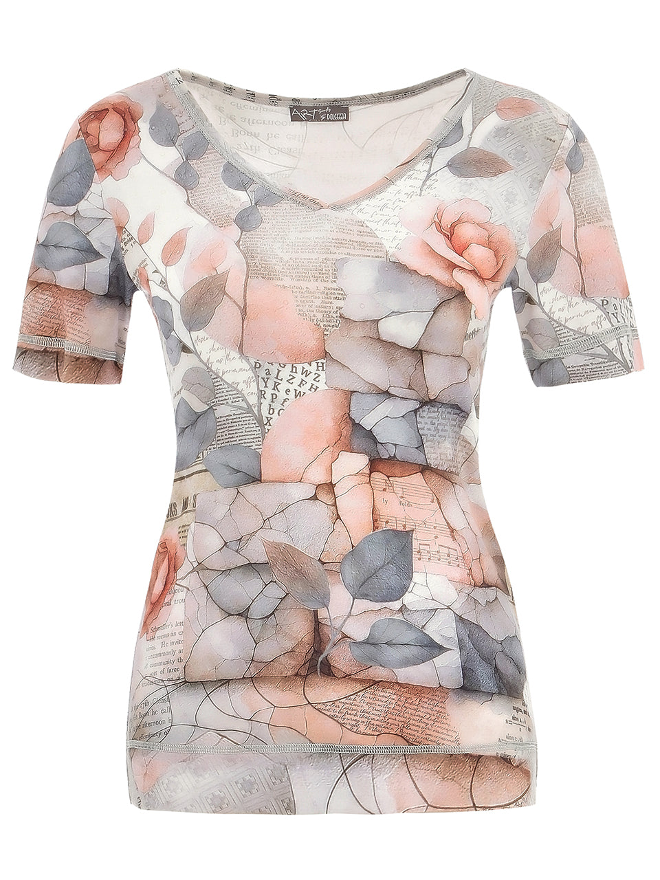 DOLCEZZA 'QUIET ROSE' V-NECK TOP WITH CLEAR RHINESTONE DETAIL - STYLE 25740