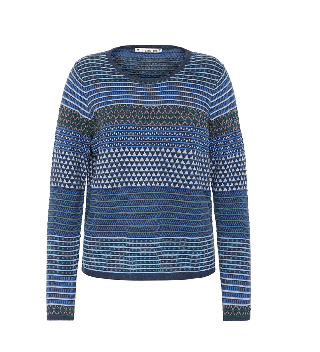 quality : 100% organic cottonknit : multi coloured pattern and structure mixshape : pullover with relaxed fitdetail : multi coloured floating jacquard pattern and structure mix, the pullover has slits at the side