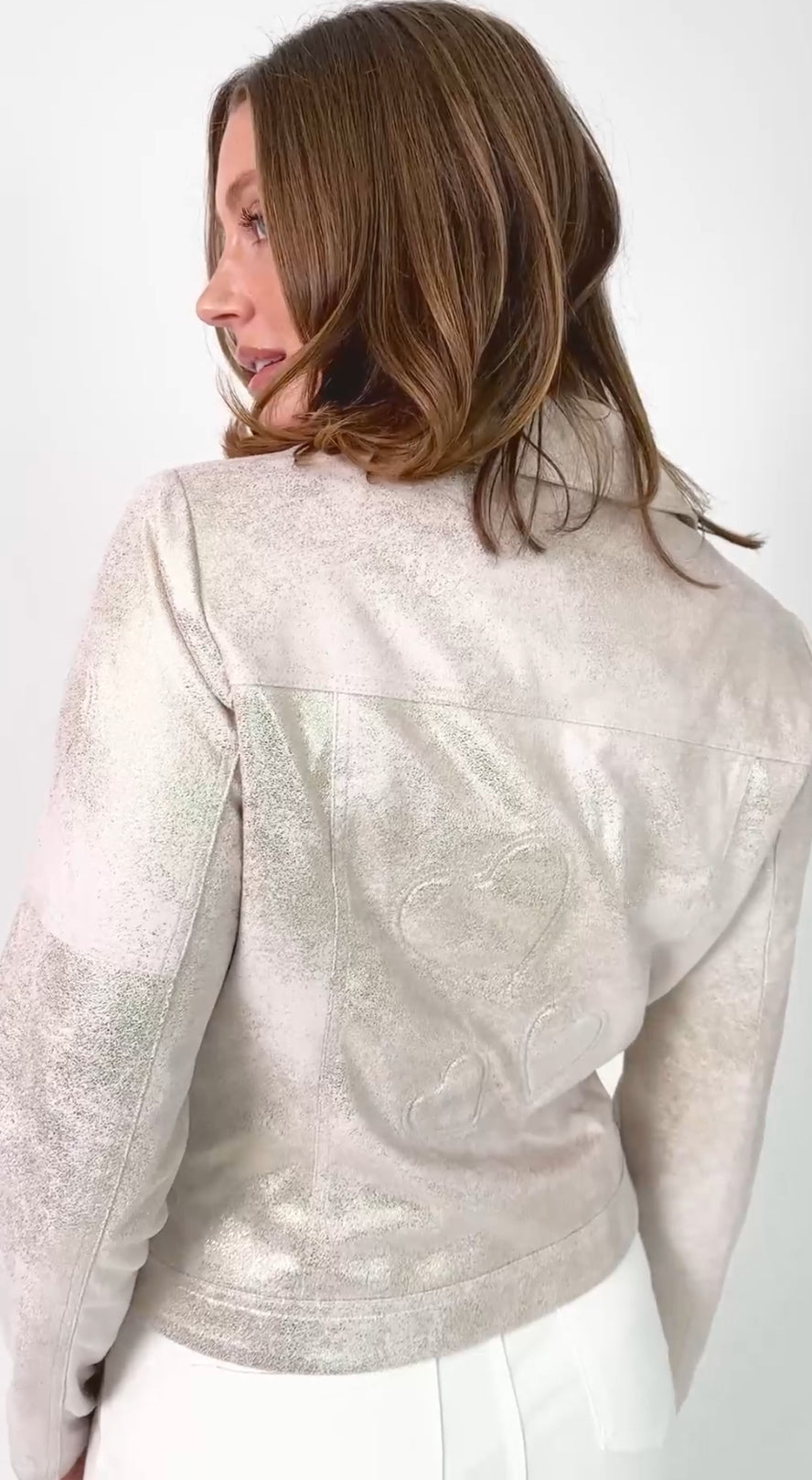 Step out in style with the Frank Lyman Jacket, featuring a chic collared neckline and a hip-length design for a flattering, regular fit. The long, straight sleeves adorned with jewels add a touch of elegance, making it perfect for casual outings or nightouts. With its plain pattern and feminine, edgy vibe, this versatile piece is ideal for everyday wear.