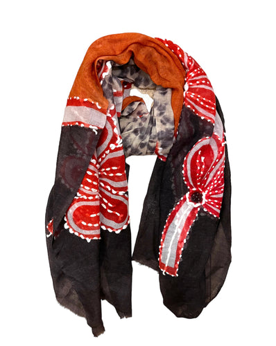 Painted and embroidered scarf chocolate