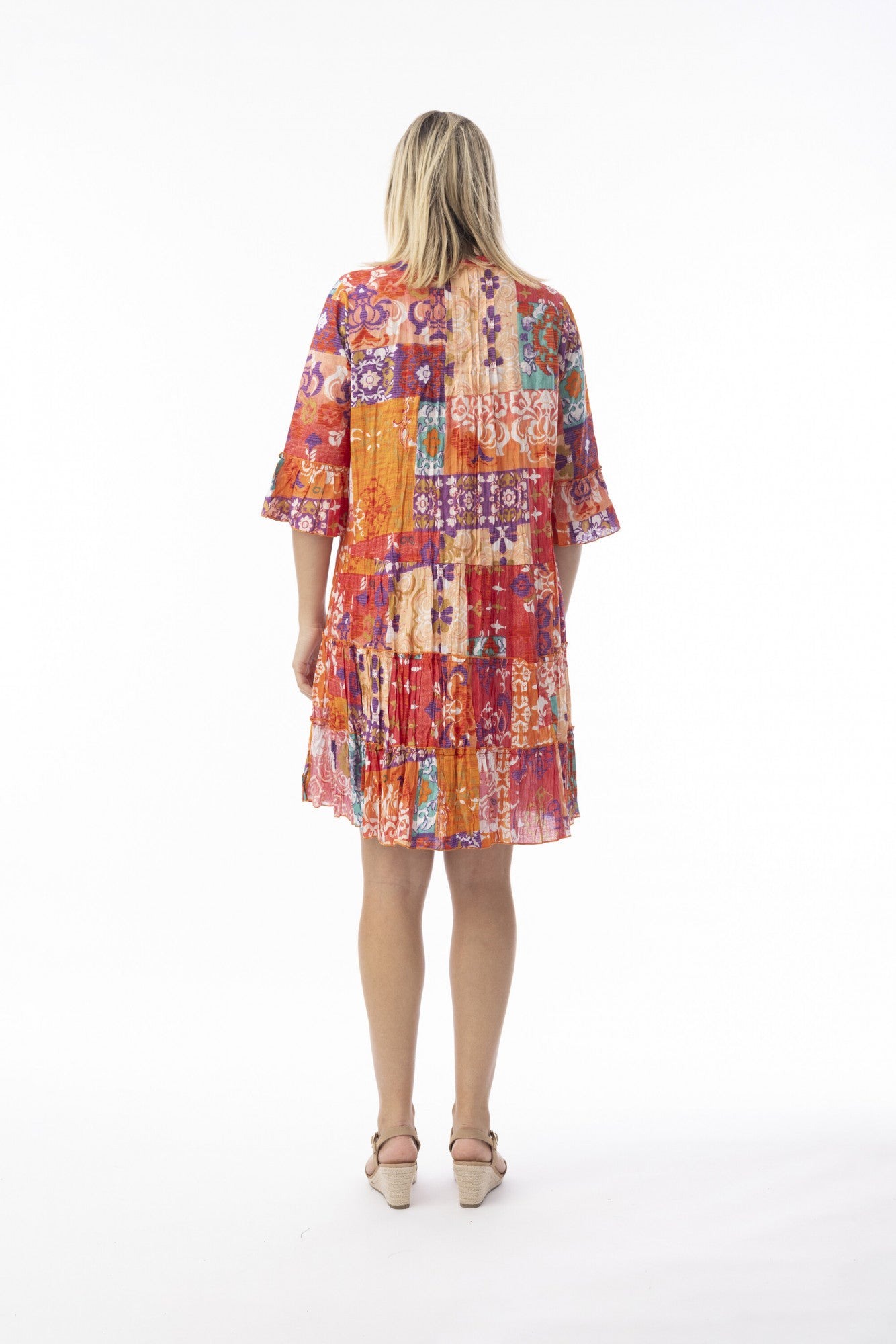 Celebrate summer in our bold garment, the Araya Frill Sleeve Layer Dress! Featuring a vibrant mix of colour and print, this dress radiates summer vibes. The A-line knee-length design with playful ruffles and relaxed three-quarter sleeves ensures both comfort and style, making it your go-to outfit for summer days out.